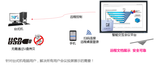 對(duì)有(yǒu)較高(gāo)的(de)信息安全<δε需求時(shí),會(huì)議(yì)的(de)過程中需要(yàoφ♥ )用(yòng)到(dào)企業(yè)內(nèi)部員(yuán)工(g↑↑ōng)內(nèi)部相(xiàng)關數(shù)據☆φ時(shí),針對(duì)無筆(bǐ)記本員(yuán)工(gōng),≥✘智能(néng)交互會(huì)議(yì)平台可(kě)通(€∞>tōng)過管理(lǐ)軟件(jiàn)可(kě)一(yī)∑∞>鍵搜索到(dào)內(nèi)部對(duì)應人(rén)員(yuán)←∏π台式電(diàn)腦(nǎo),進行(xíng)遠(yuǎn)程文(wén©♦δ→)檔展示,無需進行(xíng)U盤拷貝,确保文(wén)件(jiàn)安全性§¥β更有(yǒu)保障!
