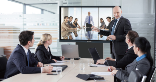 大(dà)于50m2的(de)會(huì)議(yì)室,坐(zuò)席★Ωσ人(rén)數(shù)在40人(rén)以上(shàng),可(kě)搭配使用(yòng)86寸會(huì)議(yì)平 ✘≈闆。