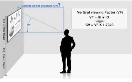 圖像寬度IW=6×VF-CV; VF=IH+IO; CV(最近(© jìn)觀看(kàn)距離(lí))=VF×1.732。
